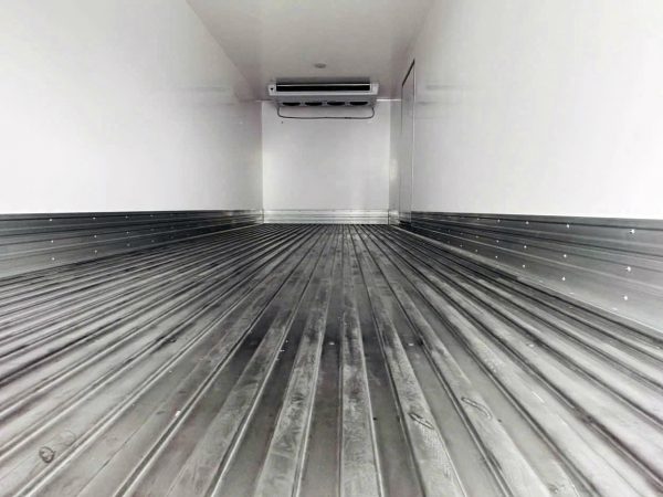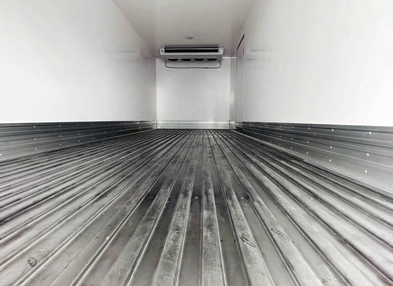 - Sàn thùng chuyên dụng: Mặt sàn bằng Inox 304 dập sóng dày 1.2mm. Giúp hơi lạnh lưu thông dễ dàng dưới đáy hàng hóa và đảm bảo vệ sinh an toàn thực phẩm.